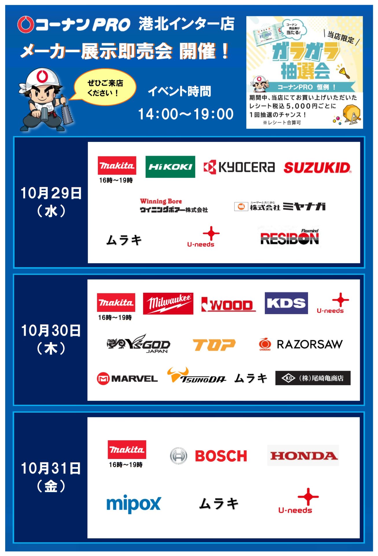 2025.10.27イベント PRO港北インター店 メーカー展示即売会 開催! 対象店舗 港北インター店 カテゴリー 提携サービス 1 チラシ 4 イベント 5 商品紹介 18 リニューアル店 1 お知らせ 10 前のページ « 一覧ページへ戻る