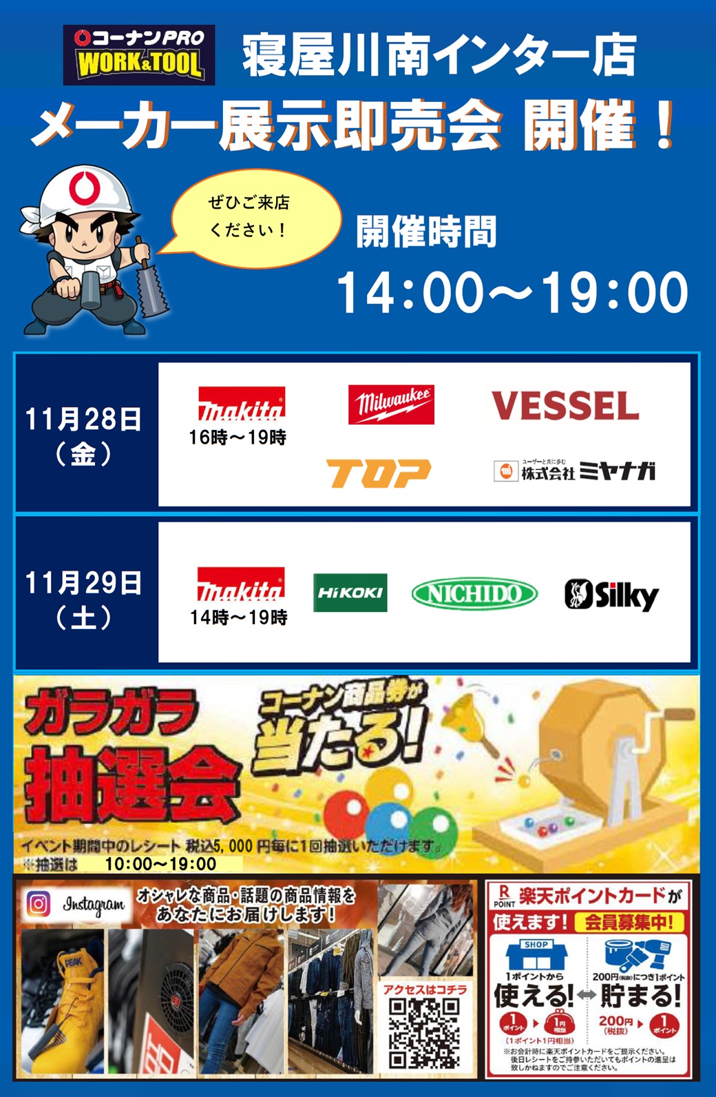 2025.11.18イベント PRO WORK&TOOL 寝屋川南インター店 ガラガラ市 開催! 対象店舗 WORK&TOOL寝屋川南インター店 カテゴリー 提携サービス 1 チラシ 6 イベント 7 商品紹介 19 リニューアル店 1 お知らせ 10 前のページ次のページ « 一覧ページへ戻る