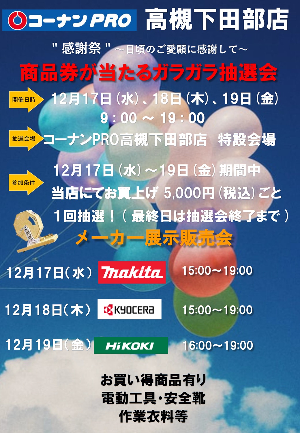 2025.12.8イベント PRO高槻下田部店 ガラガラ市 開催! 対象店舗 高槻下田部店 カテゴリー 提携サービス 1 チラシ 2 イベント 2 商品紹介 20 リニューアル店 1 キャンペーン 2 お知らせ 10 前のページ « 一覧ページへ戻る