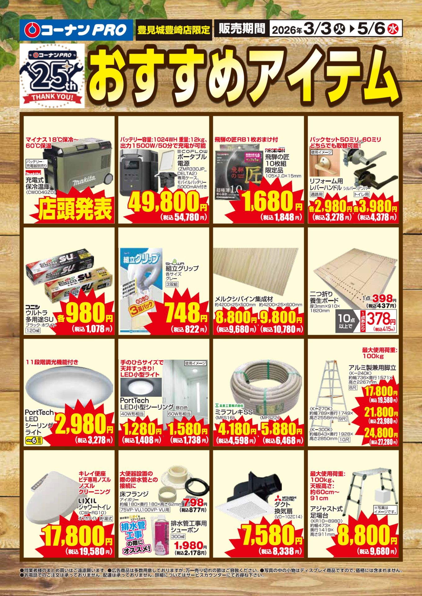 2026.3.2チラシ コーナンPRO 豊見城豊崎店 おすすめアイテム! 2026年5月6日まで 対象店舗 豊見城豊崎店 PDF はこちら カテゴリー 提携サービス 1 チラシ 2 イベント 1 商品紹介 17 お知らせ 10 次のページ « 一覧ページへ戻る