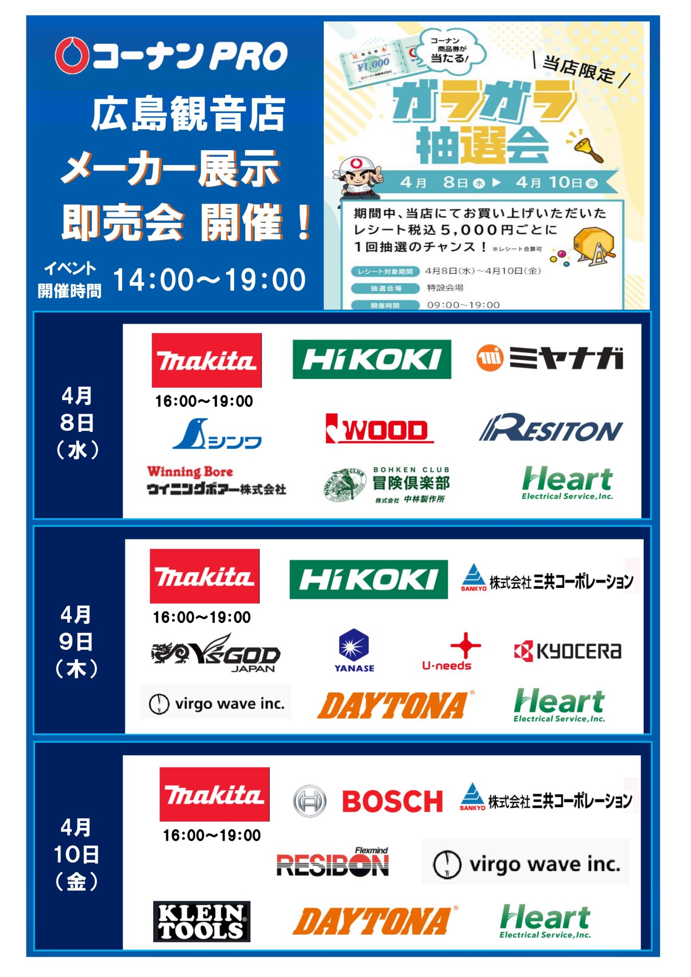2026.4.1イベント PRO広島観音店 メーカー展示即売会 開催! 4月8日~10日の3日間 対象店舗 広島観音店 カテゴリー 提携サービス 1 チラシ 2 イベント 2 商品紹介 17 リニューアル店 1 キャンペーン 2 お知らせ 11 次のページ « 一覧ページへ戻る